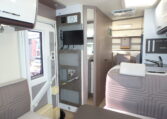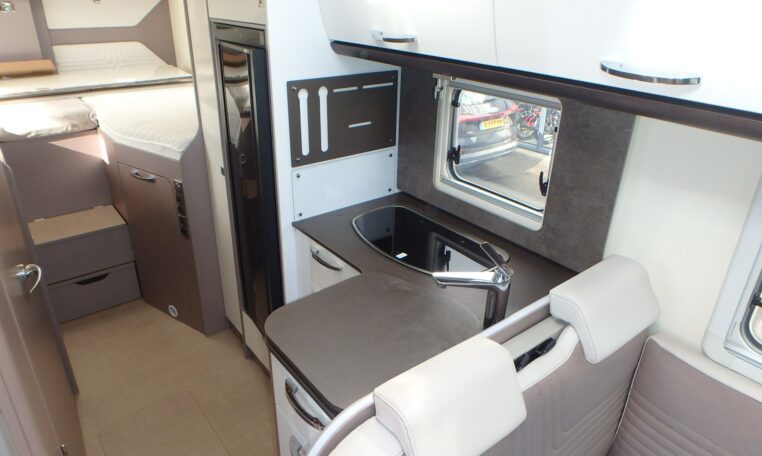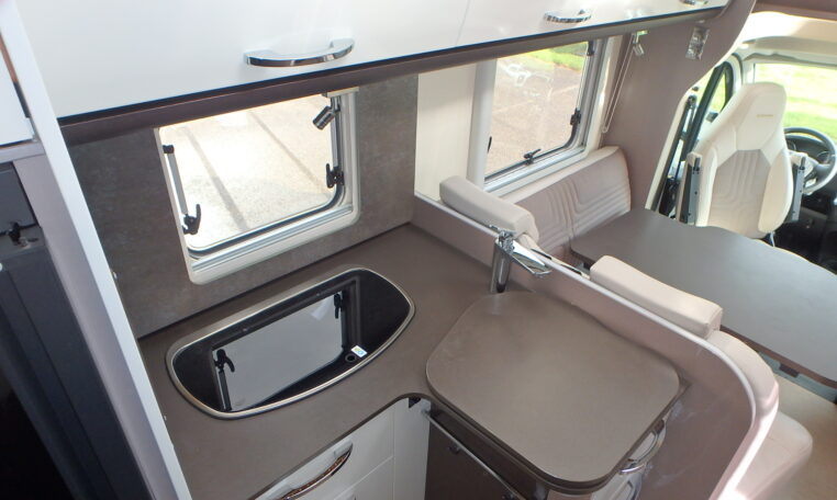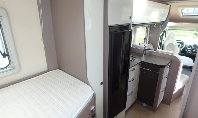 Binnenin de Burstner Lyseo Privilege T728G vind je een ruime L-zitgroep waar je comfortabel kunt ontspannen, een grote hoekkeuken met een 3-pits gastoestel, en een ruime badkamer met aparte douche alles ontworpen met de kenmerkende Bürstner-kwaliteit. Achterin bevinden zich twee lengtebedden van 200 cm, ideaal voor lange reizigers die graag goed slapen onderweg.