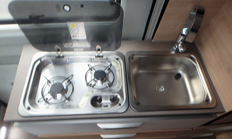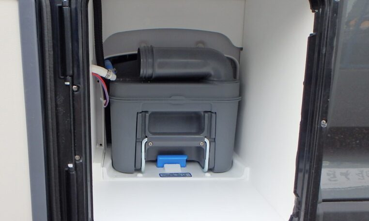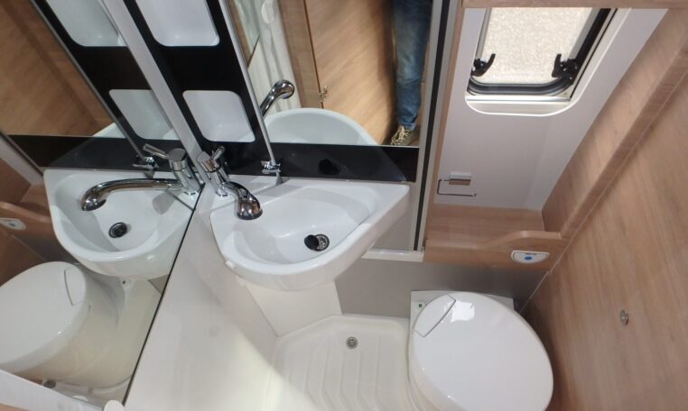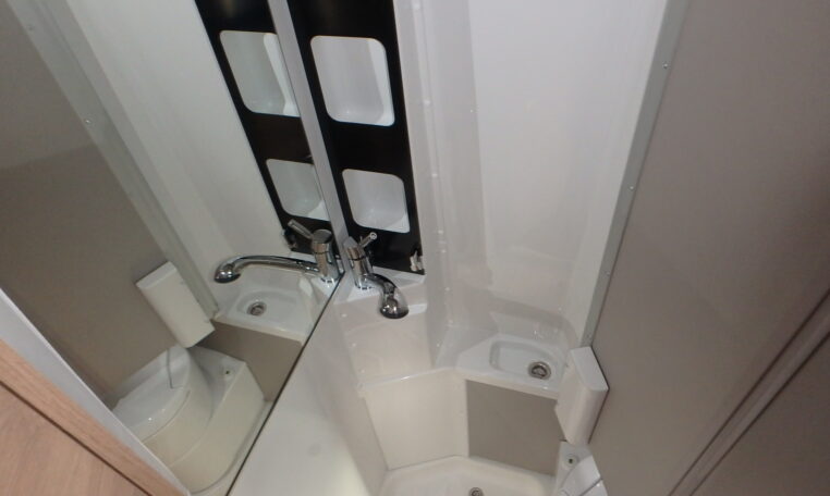 - Douche achterin (uitneembare douchekop bij bed achterin, voor achtervleugeldeur rechts)
