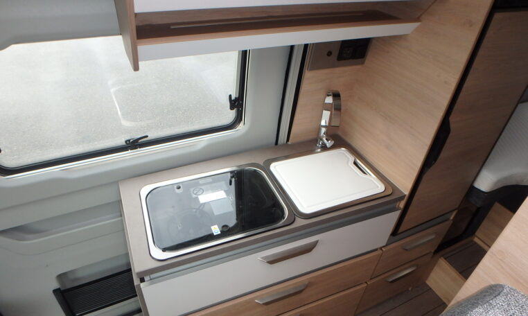 Het interieur van de Knaus Boxdrive 680ME MAN is een oase van comfort en luxe. Het grote bed in de lengte is in hoogte verstelbaar, waardoor je kunt genieten van een goede nachtrust en voldoende ruimte hebt om te ontspannen. Dit is jouw thuis weg van huis, waar je kunt genieten van al het comfort dat je verdient tijdens je reizen.