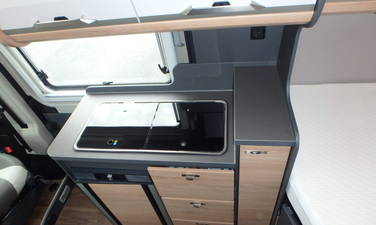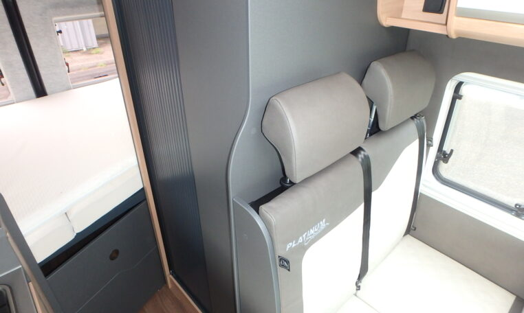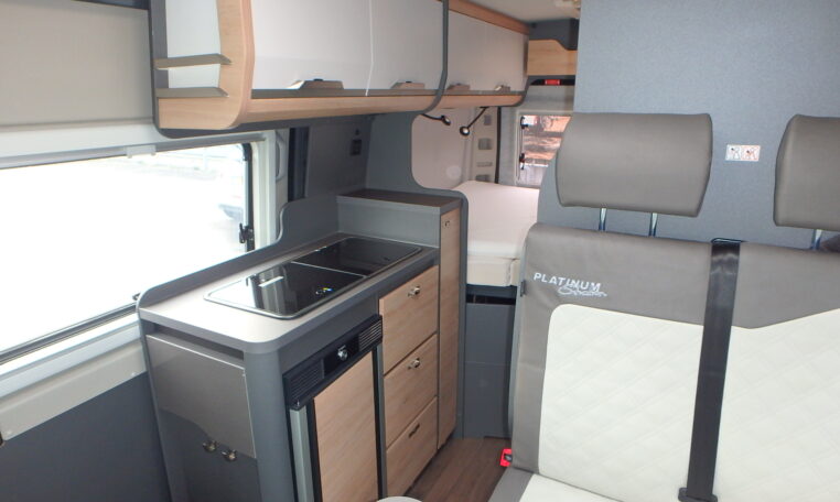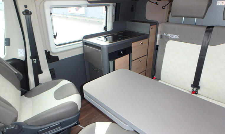 De nieuw ontworpen was en douchegelegenheid zorgt voor extra comfort onderweg, terwijl het moderne design perfect aansluit bij de rest van het stijlvolle interieur. Aan de buitenzijde straalt de camper pure klasse uit met zijn zwarte metallic-lak en exclusieve Platinum Selection-bestikkering een echte blikvanger op elke camping of parkeerplaats.