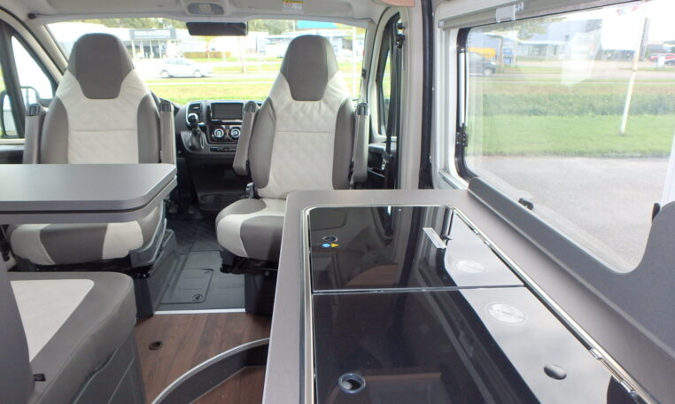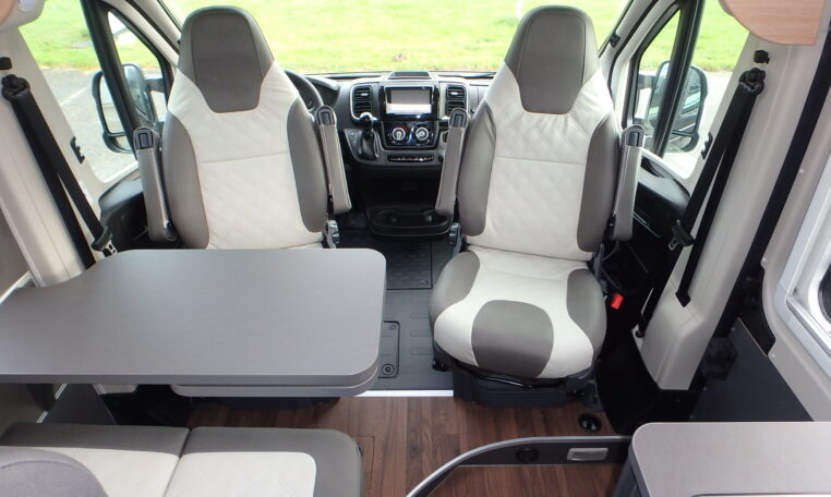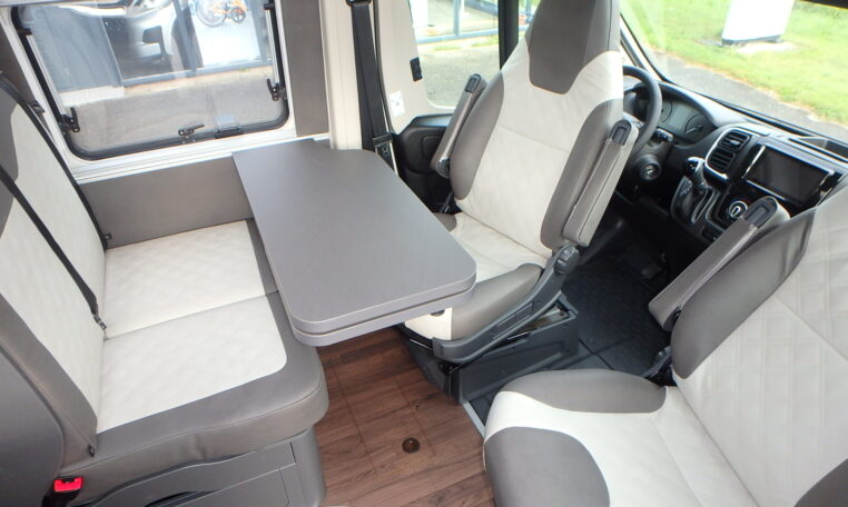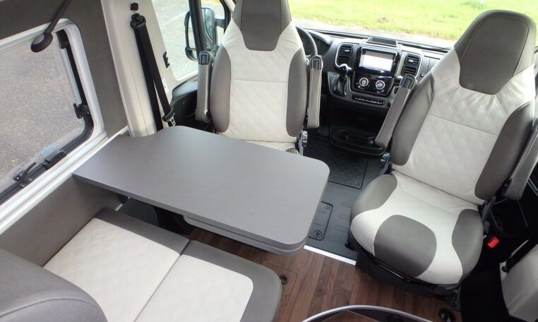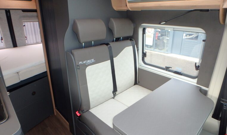 - Dinettezitbank verbreding door zijwaardse uittrek (ook tijdens de rit)