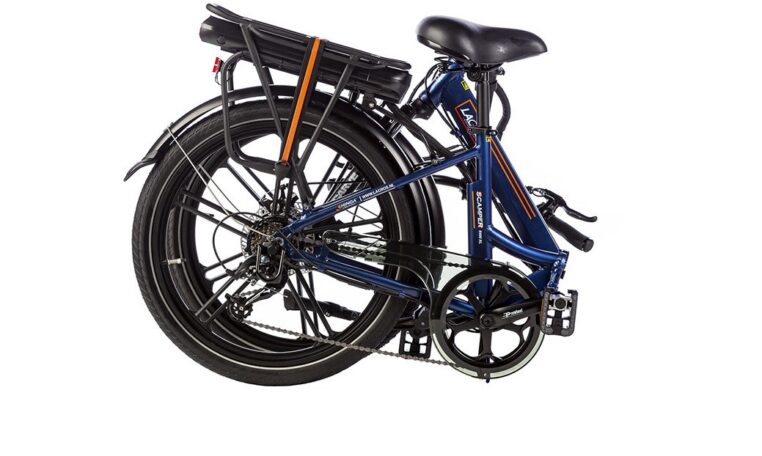 De elektrische vouwfiets Lacros Scamper S400XL Mat-Blauw is uitgevoerd met een krachtige 250W achterwiel motor van het A-merk BAFANG. Met stevige scharnieren, soepele voorvorkvering en een sterke 36V Lithium-Ion polymeer batterij, is deze elektrische vouwfiets uw ideale reisgenoot! Zonder moeite fietst U tegen stevige wind in of een steile helling omhoog. Elektrisch ondersteund haalt u met gemak een actieradius van 70-120km (de fiets kan geüpgraded worden met een 15Ah of 120Ah batterij voor een groter bereik). De Scamper S400 is comfortabel en gebruiksvriendelijk. Binnen 10 seconden is hij simpel te vouwen en op te bergen in uw auto, boot, camper of caravan.