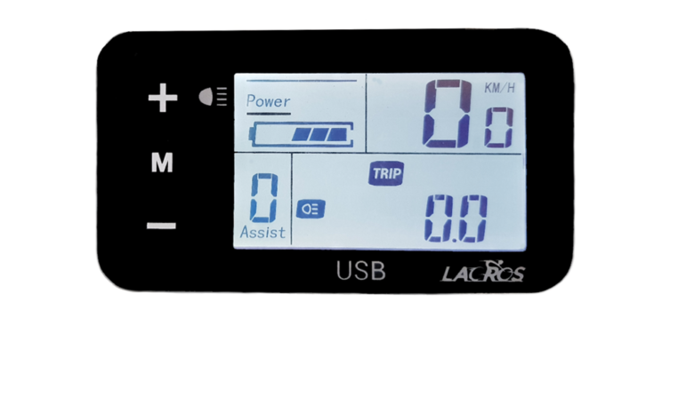 Op het stuur bevindt zich het LCD display waarmee de elektrische ondersteuning te regelen is. De 9 ondersteuningsstanden kunt u eenvoudig bedienen met twee knoppen op de bedieningsunit. Het display is verlicht en eenvoudig te bedienen. Door een druk op een knop kunt u tal aan informatie aflezen, zoals de snelheid, afstand en het accugebruik. De ondersteuning stopt bij snelheden boven de 25 km per uur. Dit is in Nederland wettelijk bepaald. De LED-lampen zijn te bedienen via het LCD display. Het display heeft aan de achterkant een USB-aansluiting. Hiermee heeft u de mogelijkheid uw telefoon of navigatie op te laden tijdens het rijden.