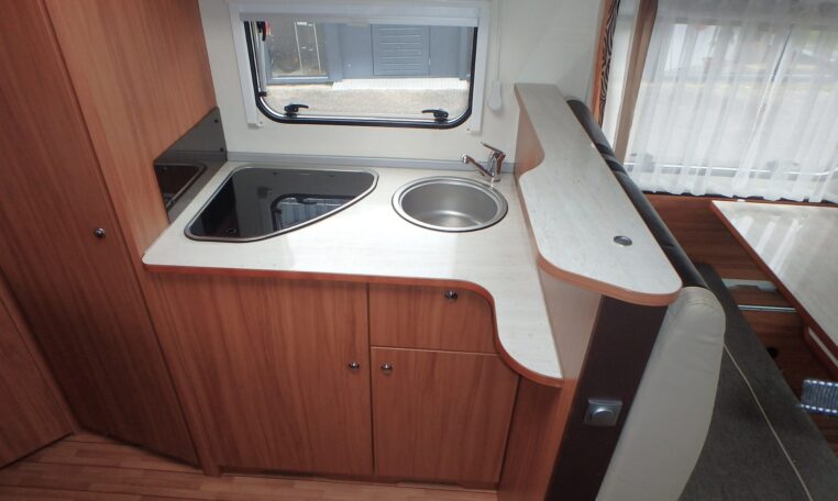 De keuken is ontworpen met gebruiksgemak in gedachten en beschikt over een groot keukenblad met veel aflegruimte. Hierdoor heb je alle ruimte om uitgebreid te koken, zelfs onderweg. Ook de sanitaire voorzieningen zijn van hoog niveau: de camper is uitgerust met een badkamer met een aparte douche in de hoek, wat zorgt voor vee ruimtebesparing en meer comfort.