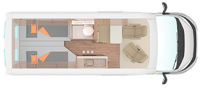 Binnenin vind je gescheiden bedden voor ultiem slaapcomfort en een ruime zit om te ontspannen na een dag vol avontuur. Het interieur is strak en modern vormgegeven, met hoogwaardige materialen die zorgen voor een luxe gevoel en duurzaamheid.
