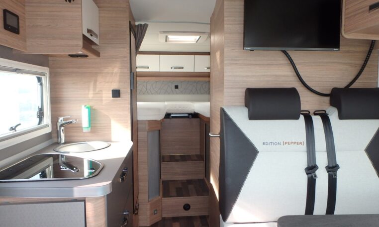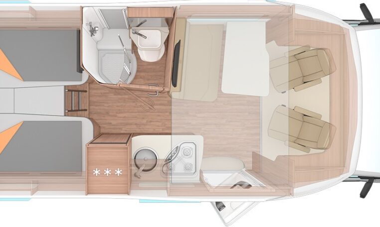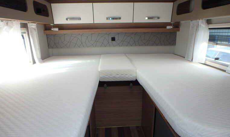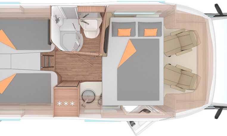 Geniet van ongeëvenaard comfort met enkele bedden en een hefbed. Je kunt rekenen op een goede nachtrust, zelfs als je onderweg bent. De slank ontworpen indeling zorgt voor optimaal gebruik van de ruimte.
